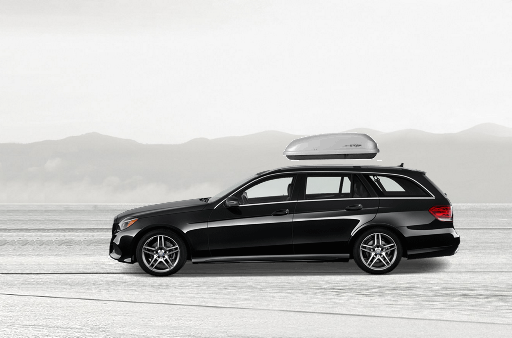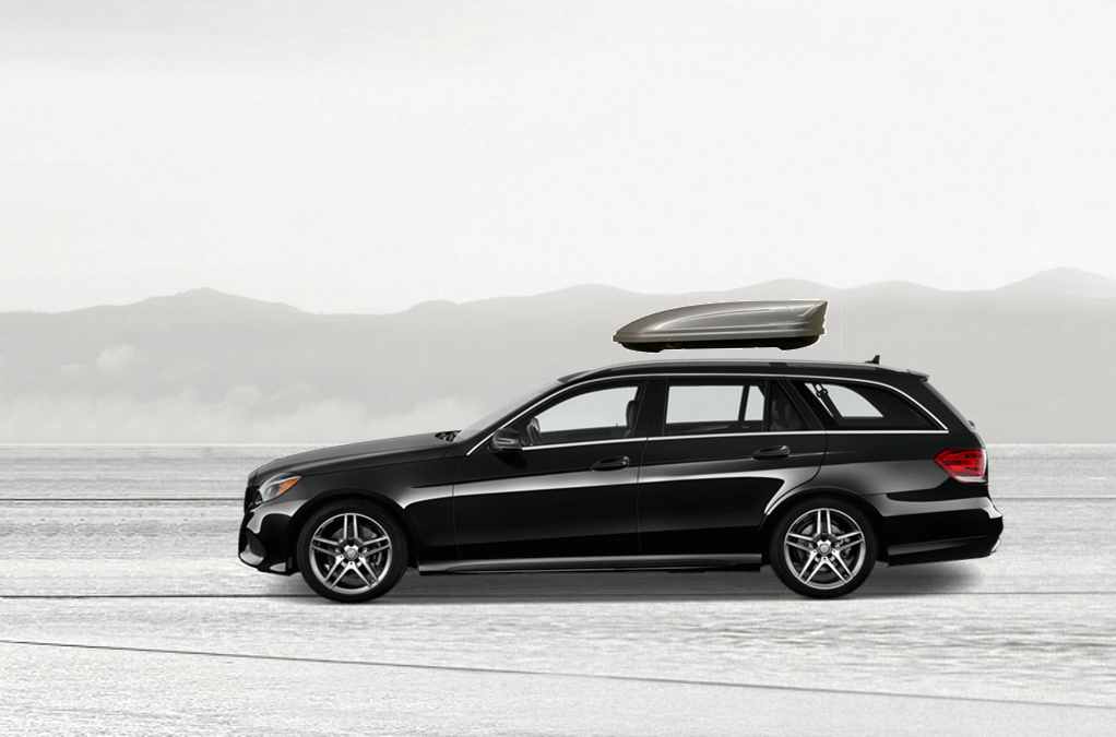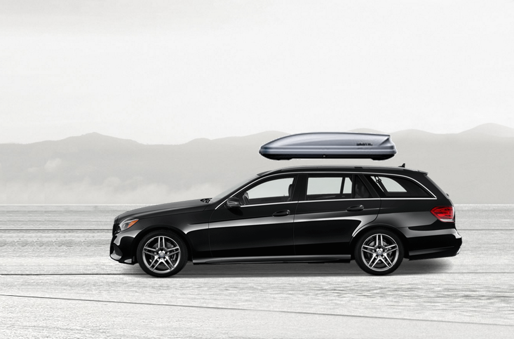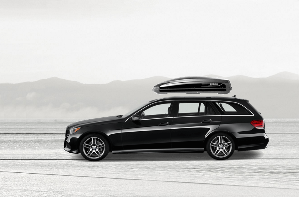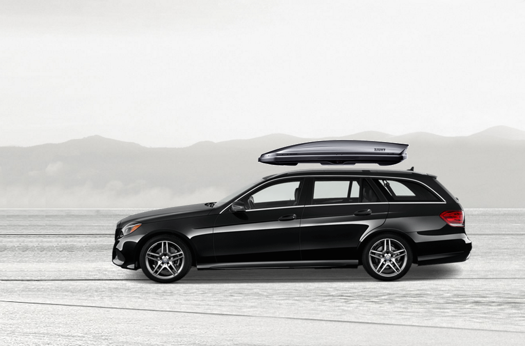 Yakima SkyBox Pro 16 Titanium sulla Mercedes E 81 x 36 x 15 in