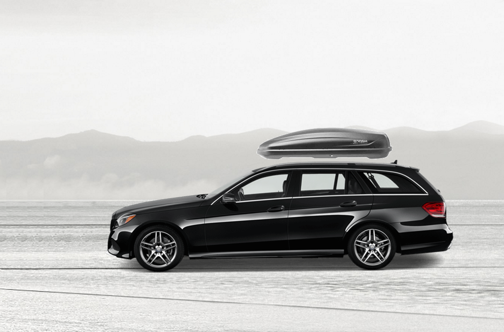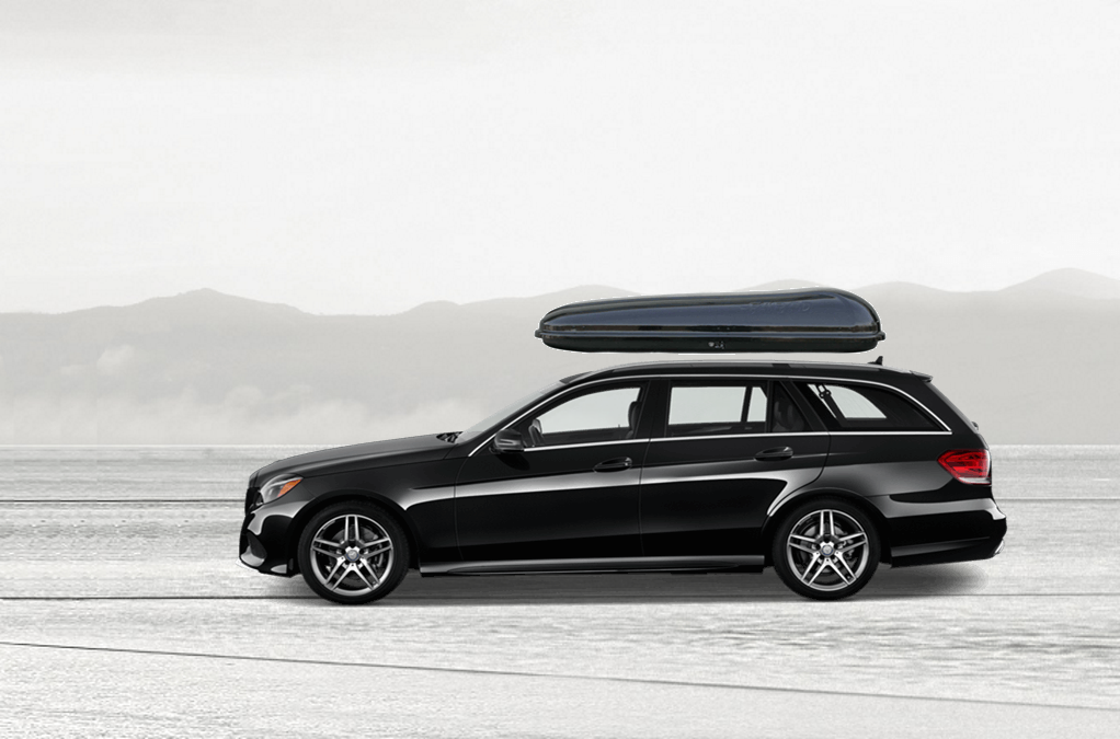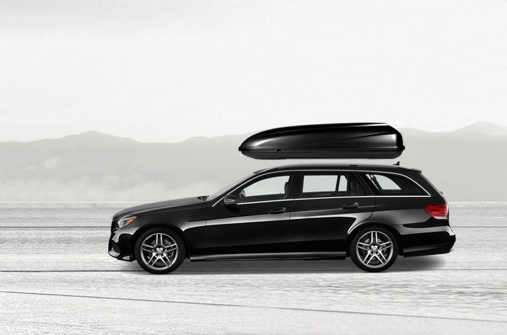 Yakima SkyBox Pro 18 Onyx sulla Mercedes E 92 x 36 x 16 in