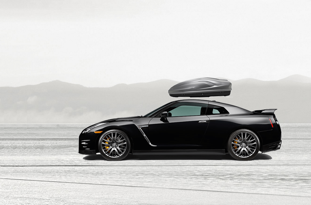 Yakima SkyBox Pro 16 Titanium sulla Nissan GT-R 81 x 36 x 15 in