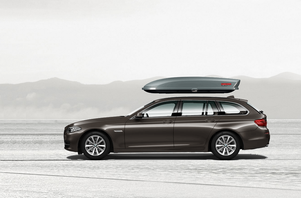 Yakima SkyBox LoPro Titanium on BMW 5 92 x 36 x 11.5 cm